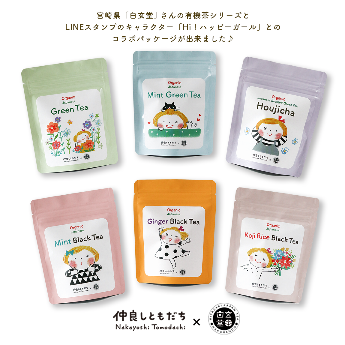 内容量はティーバッグが10個とたっぷりお楽しみいただけます。またLINEスタンプのキャラクター「ハイ!ハッピーガール」と「白玄堂」さんのコラボパッケージがハッピーなティータイムを演出してくれます☆