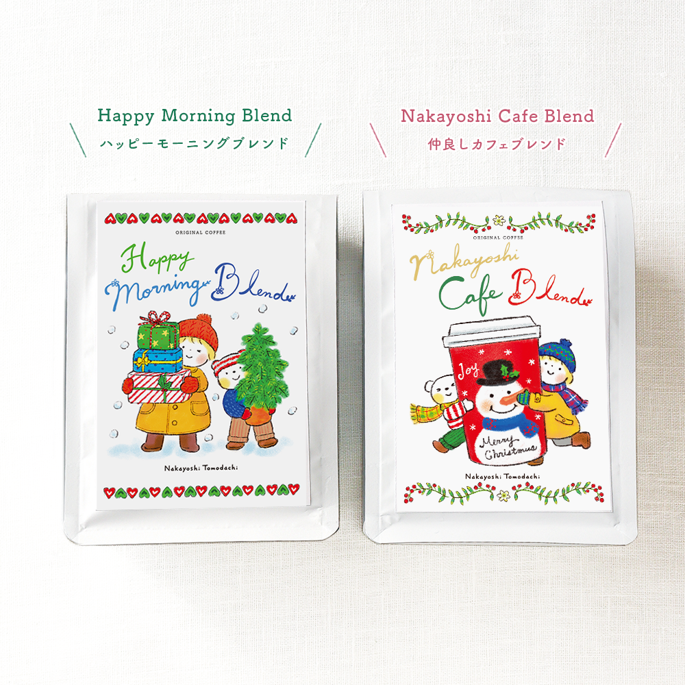 気分を上げたい朝におすすめの「Happy Morning Blend」、ほっと一息入れたい時に「Nakayoshi Cafe Blend」どちらのシーンにもお楽しみいただける内容となっております♪