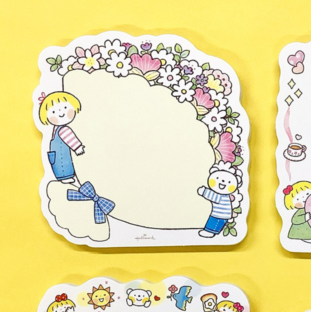 心を丁寧に伝えるグリーティングカードの老舗「Hallmark」から、「仲良しともだち」はるちゃんとふうくんが使って楽しいダイカットメモになって登場!