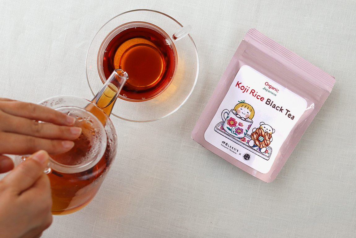 宮崎県産の有機紅茶と島根県産の米麹を使用した人気の和紅茶です。香料や添加物は使用しておりませんので、お茶本来の自然な風味とほのかな甘みを感じるとても優しい味です。