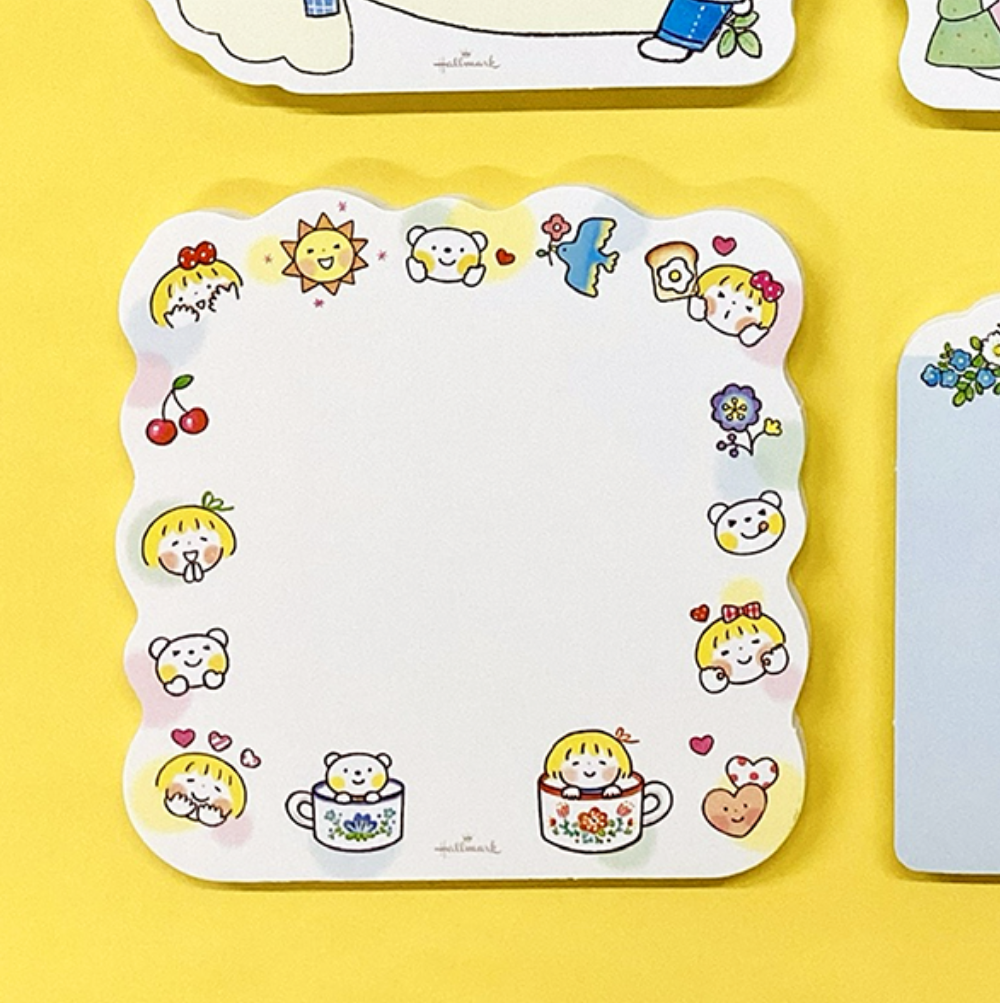 心を丁寧に伝えるグリーティングカードの老舗「Hallmark」から、「仲良しともだち」はるちゃんとふうくんが使って楽しいダイカットメモになって登場!