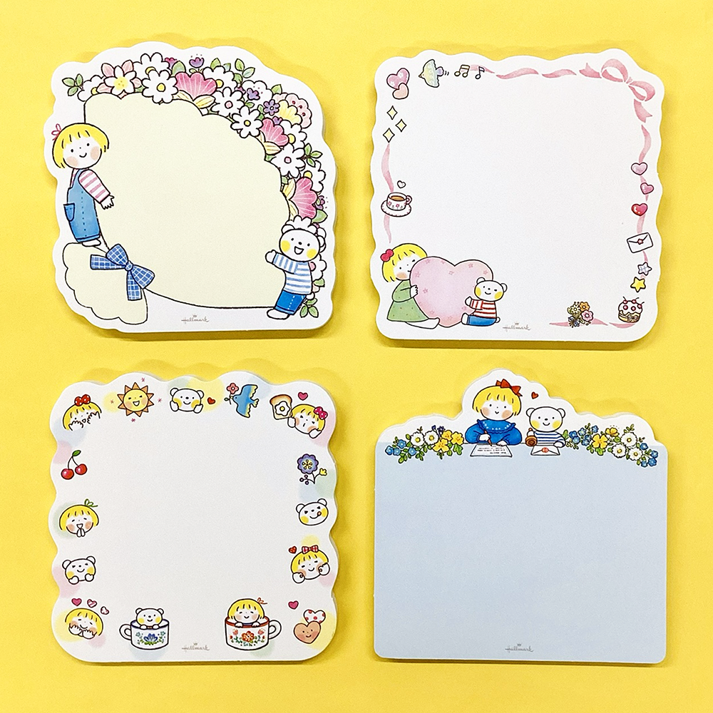 心を丁寧に伝えるグリーティングカードの老舗「Hallmark」から、「仲良しともだち」はるちゃんとふうくんが使って楽しいダイカットメモになって登場!