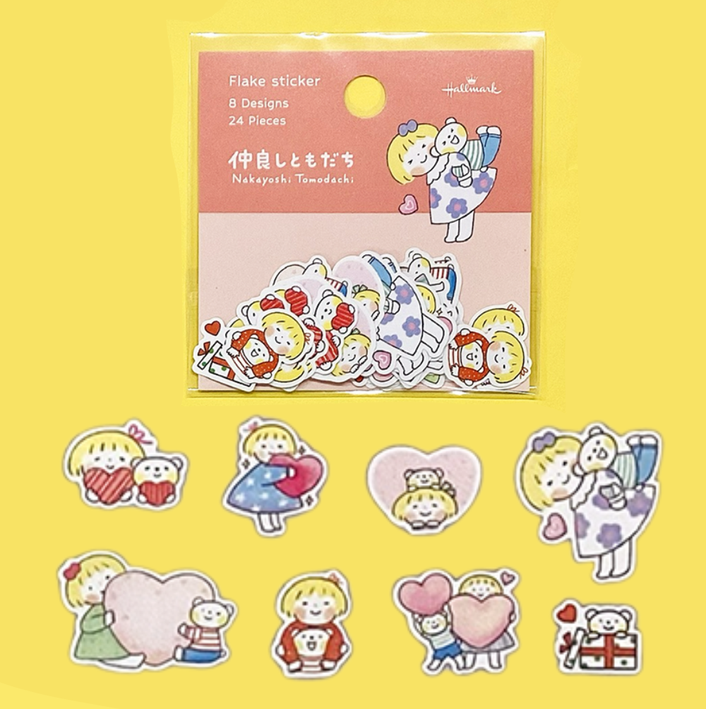 いろいろな表情やポーズが楽しめる、8柄24枚入りフレークシール。手帳や手紙、ラッピングなどのデコレーションにもおすすめです。4種類のテーマ&カラー展開でついつい集めたくなるラインナップです♪