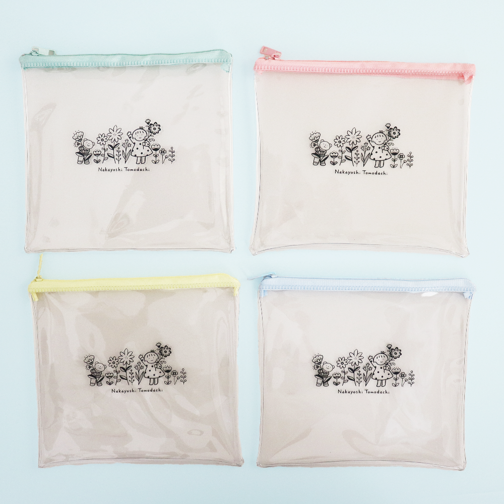 ビニール素材のクリアポーチをご用意しました!ノートやボールペンなどステーショナリーの収納ケースとして、水に強いビニール素材なのでトラベル用のアメニティグッズ入れとしても活躍してくれそうです。
